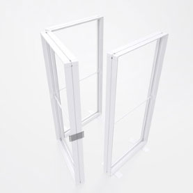 PİXLİP go kapı menteşesi, kullanıcının bir çerçeveyi bir kapıya dönüştürmesini sağlar. Göze batmayan plastik elemanlar, çerçevenin ilgili üst ve aşağı köşelerine kolayca kaydırılır. Aynı tasarımlarından dolayı kapı menteşesi izleyici için neredeyse görünmez hale gelir.